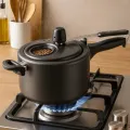 Cozinhe com praticidade e segurança utilizando a Panela de Pressão Antiaderente com visor em vidro temperado, que permite acompanhar o preparo sem precisar abrir a tampa. Seu revestimento interno facilita a limpeza e evita que os alimentos grudem, garantindo resultados saborosos e rápidos.