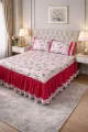 Cobre Leito Vermelho Floral em tecido macio com estampa de folhas brancas sobre fundo vermelho. A barra com franzido branco adiciona charme elegante. Fácil de lavar e secar, protege a cama e mantém o quarto bonito por mais tempo. Perfeito para quartos modernos ou românticos, trazendo conforto e estilo ao ambiente.