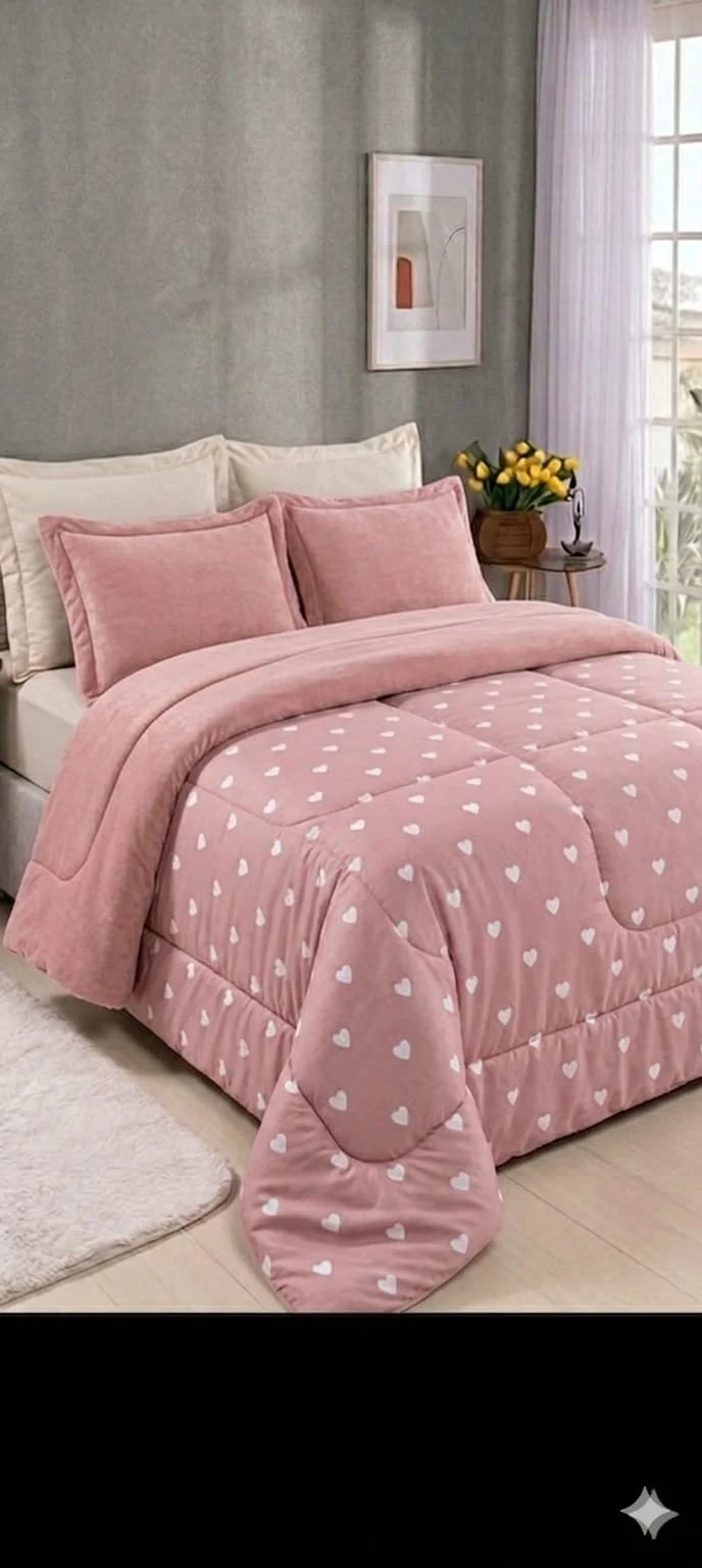 Transforme o quarto com o Cobre Leito Rosa com Corações. Conjunto felpado, macio e com caimento perfeito para cama de casal. Estampa delicada de corações em rosa suave traz romantismo sem exagero, enquanto o quilting acolchoado oferece aquecimento equilibrado. Fácil de lavar, resistente e durável — ideal para você que busca conforto diário e um toque feminino ao ambiente.